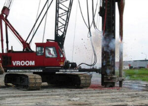 De eerste paal van het bedrijfspand in Heerhugowaard
